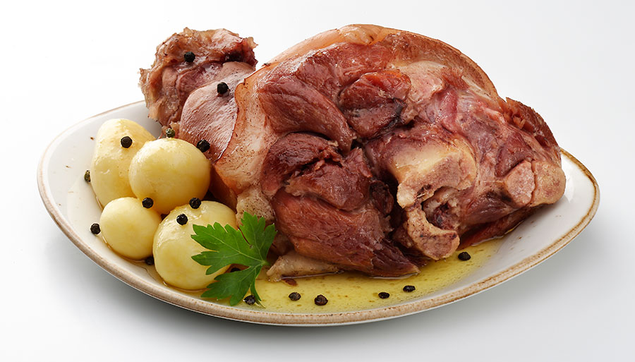 Codillo cerdo, cebolla, sal, pimienta, laurel, especias.